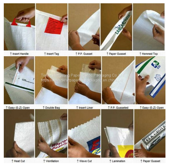 Конструкция ткани: Полипропиленовая круговая ткань (без швов) или плоская ткань из полипропилена (мешки с швом по спинке)