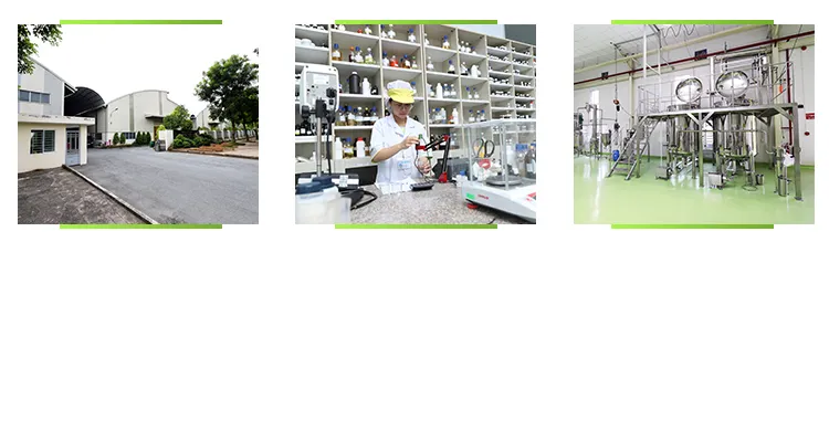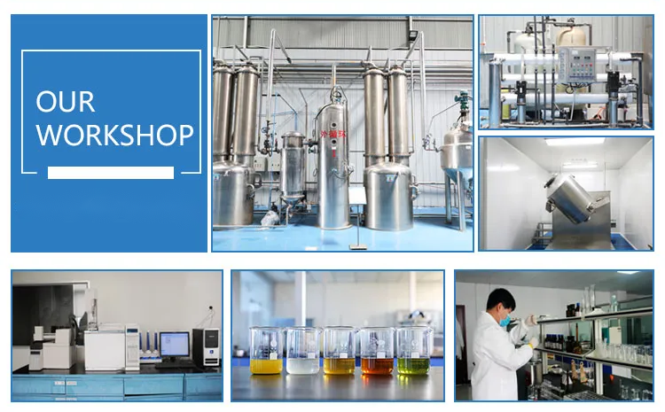 Наша фабрика занимает площадь 20 000 квадратных метров, включает в себя профессиональные цеха по производству синтетических и натуральных ароматизаторов, а также более 10 профессиональных производственных линий. Современное оборудование на нашей фабрике полностью импортное. Наши продукты сертифицированы по китайской GMP, некоторые из них сертифицированы ФДА; все продукты соответствуют стандартам CP, BP, USP и FCC.