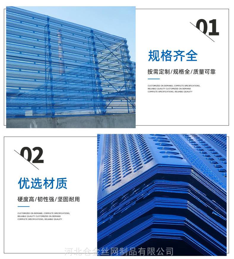 Металлическая ветрозащитная пылеулавливающая сетка. Сетка из стали для фильтрации воздуха на площадках. Голубая перфорированная ветрозащитная панель. Толщина 0