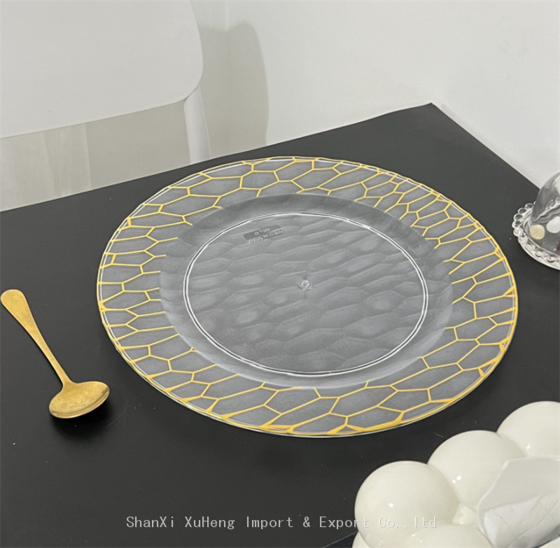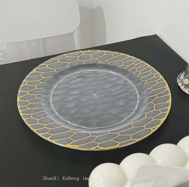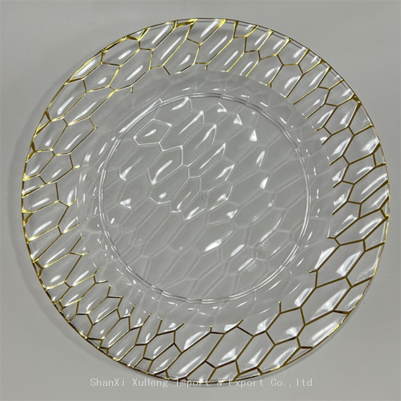 Свадебные блюда. Прозрачные акриловые тарелки для подложки размером 13 дюймов с тиснением золотом