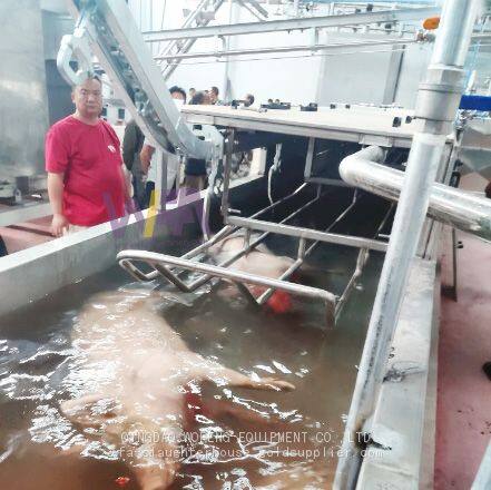 Линия убойства свиней. Машина для удаления шерсти. Оборудование для свиноубойного завода для мясокомбинатов по производству свинины.