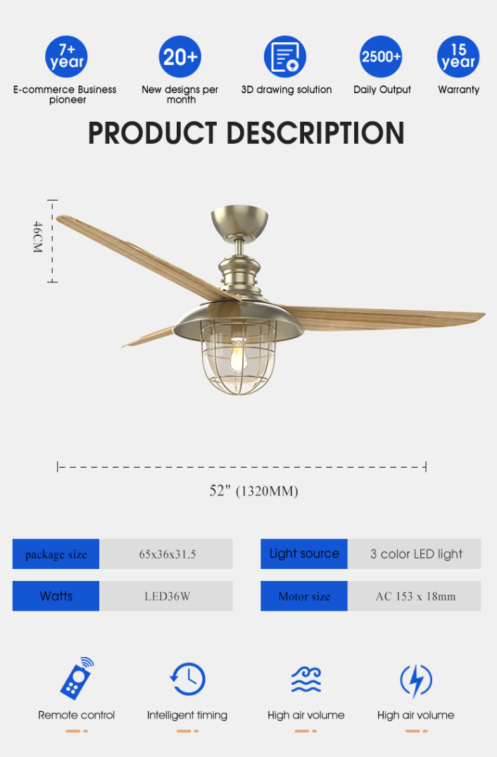 Главная > Продукты > Вентиляторы > На заказ новый вентилятор-лампа размером 52 дюйма с переменной частотой ETL для гостиной. Ретро-индустриальный потолочный вентилятор-лампа (Вейчат: 13510231336)