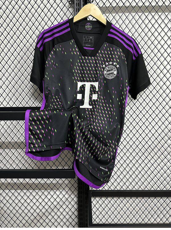 Футбольные формы Баiern Мюнхен для гостевых игр в сезоне 2023-2024: майка с номером 9 Кейна, майка с номером 25 Мюллера, майка с номером 42 Музиэля