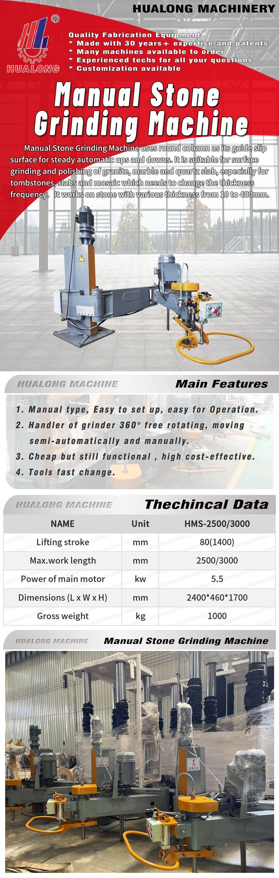 Использует цилиндр в качестве направляющей скользящей поверхности для плавного автоматического подъема и опускания. Подходит для шлифования и полировки поверхности гранита, мрамора и кварцевых плит, особенно для надгробных памятников, плит и мозаики, которым требуется часто менять толщину. Работает с камнем различной толщины от 10 до 400 мм.