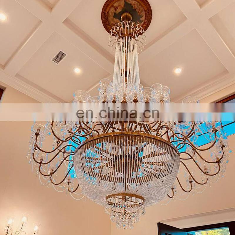 Высококачественный золотобронзовый кристальный люстра большого размера для холла отеля