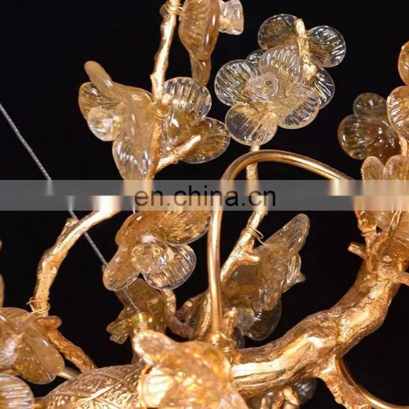 Современный декоративный люстра для гостиной в форме птицы с веточками из стекла