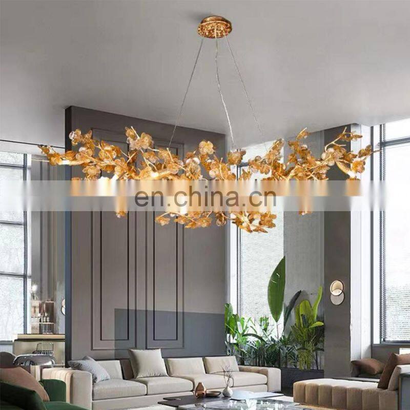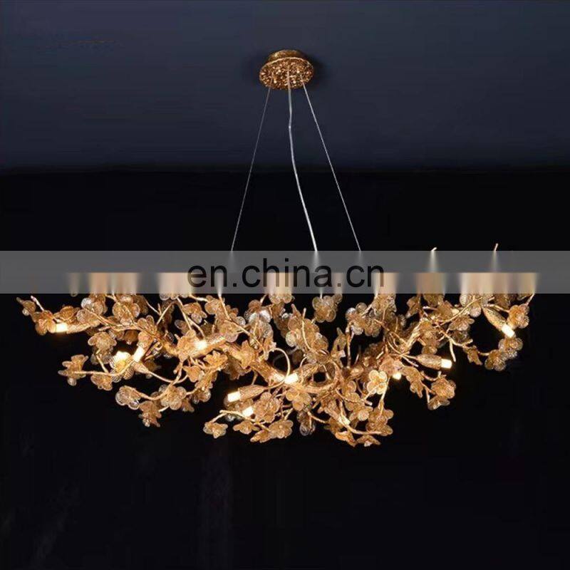 Современный дизайн. Люксурный декоративный люстра-пендант для гостиной в стиле ветвей дерева и цветов из стекла