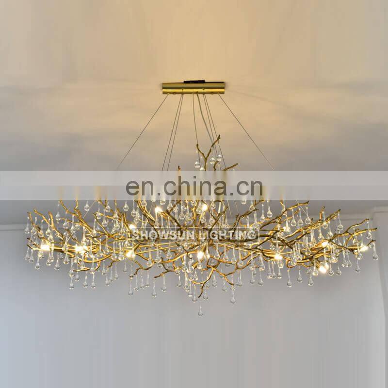 Люкс-уровневый полочный светильник с кристаллами в виде ветвей дерева из медной латони с каплевидными элементами