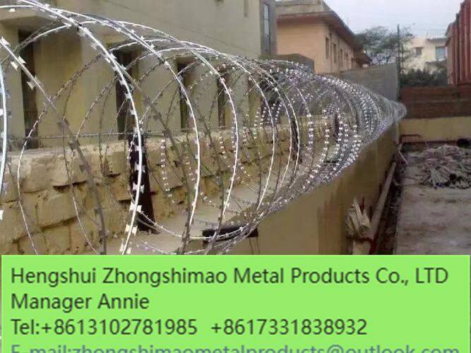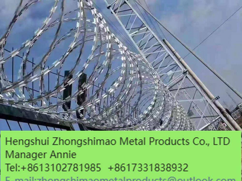 Лезвие колючая проволока, также известная как лезвие колючая проволока или лезвие колючая сетка, является новым типом защитной сетки. Лезвие колючая веревка обладает отличными характеристиками, такими как эстетичность, экономическая практичность, хороший защитный эффект и удобство монтажа. Лезвие колючая веревка широко применяется в промышленных и горнодобывающих предприятиях, садово-апартаментных комплексах, пограничных пунктах контроля, военных областях, тюрьмах, временных удержательных центрах, правительственных зданиях и других объектах безопасности многих стран.
