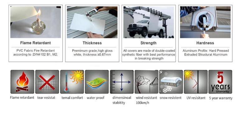Срок службы алюминиевого или оцинкованного стального каркаса составляет 15-20 лет, срок службы кровли - 8-10 лет при правильном использовании.