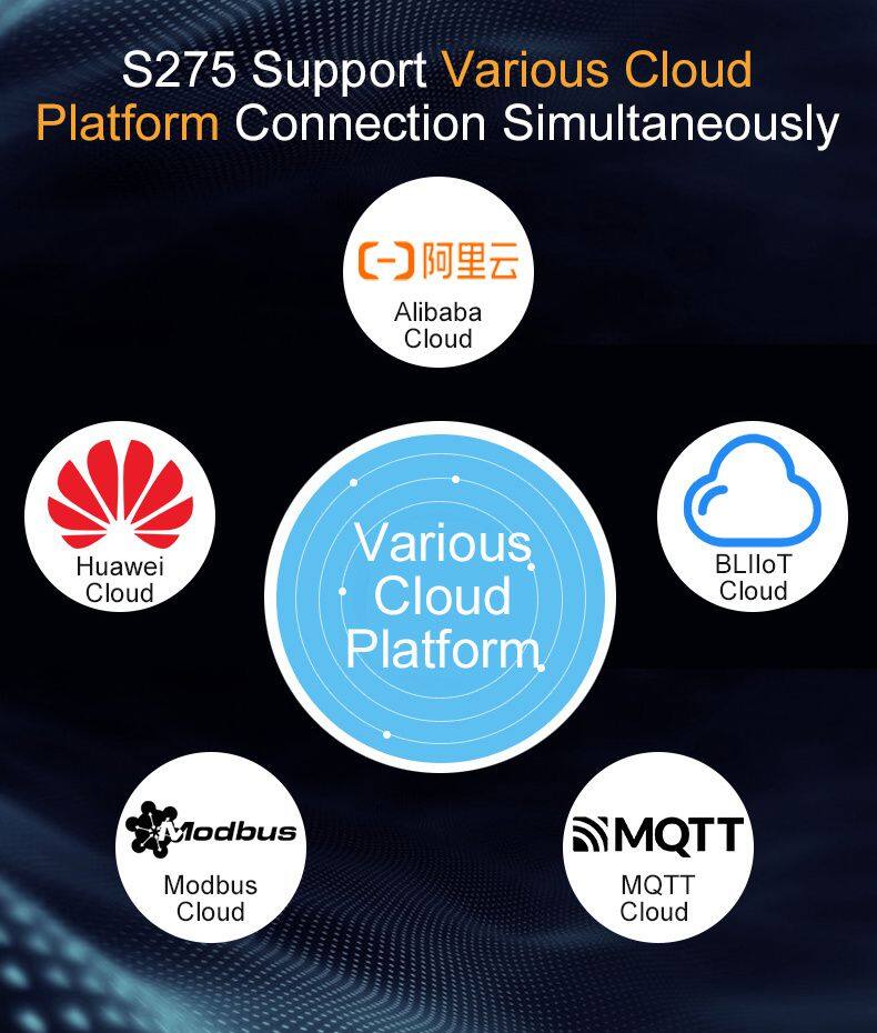 Промышленный 4G беспроводной сотовый RTU S275 имеет 8 цифровых входов, 6 аналоговых входов, 4 реле выходов, 1 вход температуры и влажности, а также 1 последовательный порт RS485. RTU поддерживает протоколы Modbus RTU over TCP, Modbus TCP, MQTT.