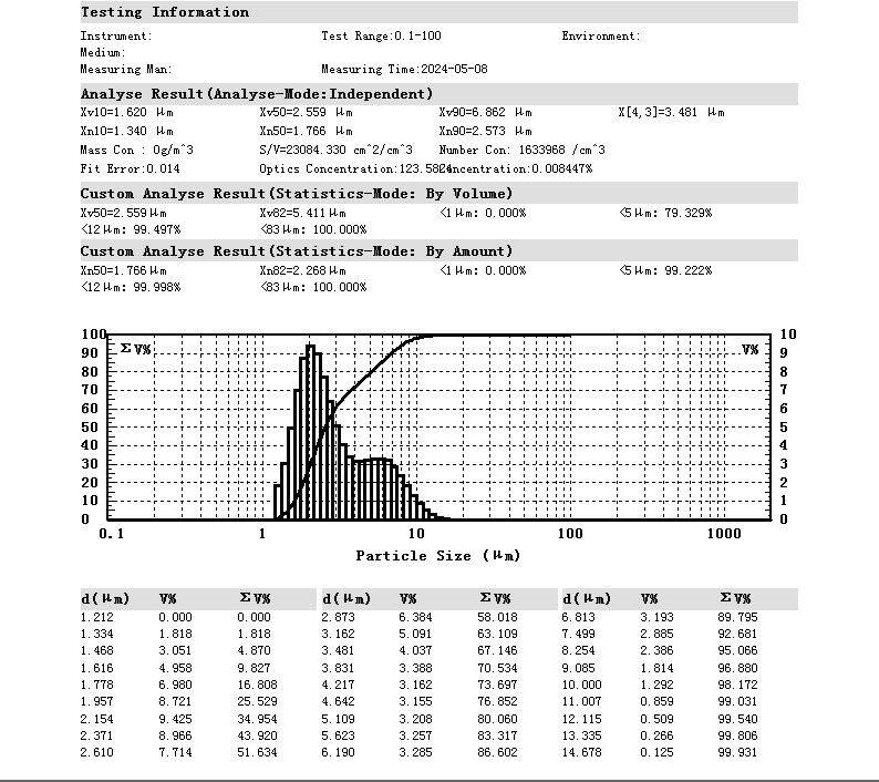 SPRAY-319 Индустриальный лазерный анализатор размера частиц - это специально разработанный настольный лазерный анализатор размера частиц для тестирования размера капель распыла. Этот прибор использует принципы лазерной дифракции и дифракции Фраунгофера, имеет параллельный оптический путь, оснащен высокопроизводительным и высоковольтным лазером с временем работы > 25000 часов, легко обеспечивает требования тестирования капель распыла. Диапазон тестирования можно регулировать в соответствии с требованиями клиентов.