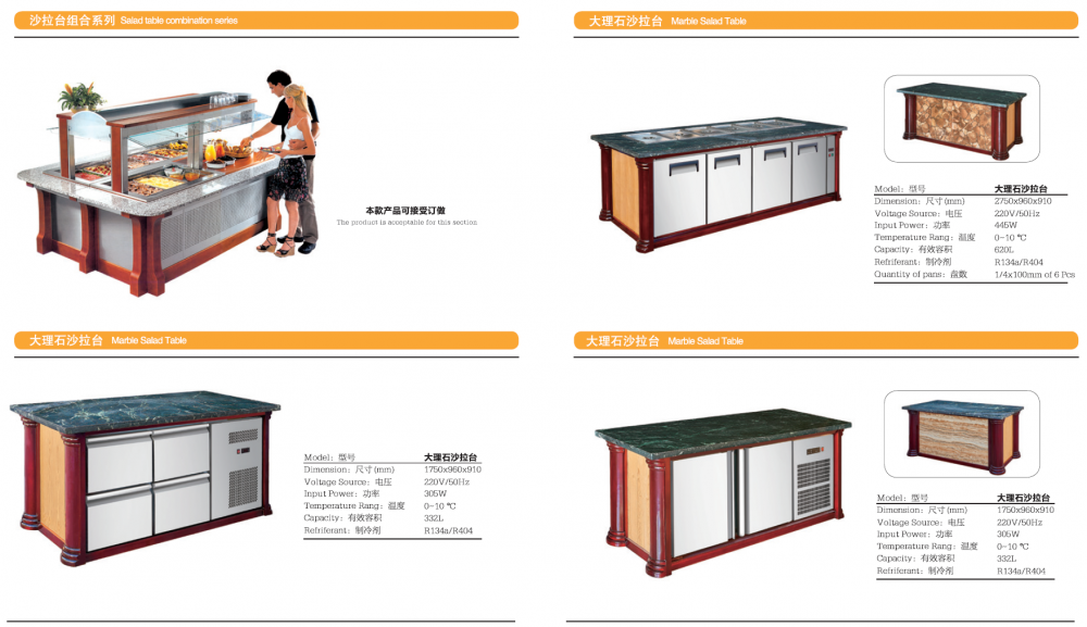 Главная > Продукты > холодильный витринный шкаф > Холодильный пицц-каунтер с мраморным столешницей и салатной стойкой
