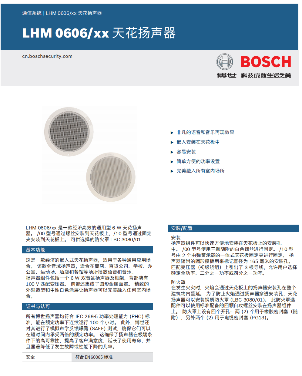 Навесной динамик, 6 Вт, ABS. 2". Коробка: LC5-WC06E4. BOSCH