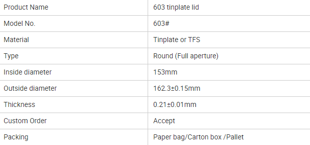 153 мм 603# легкотрескающиеся крышки для консервных банок из оцинкованной стали