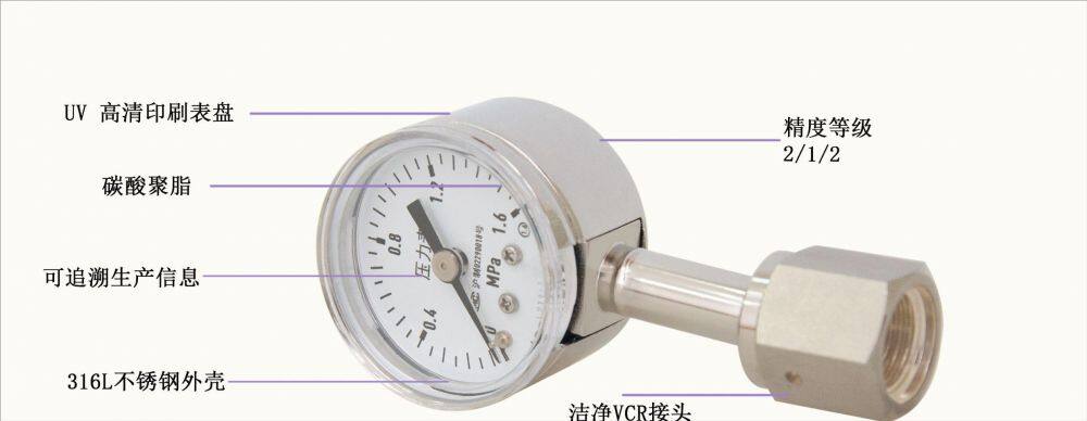 50 мм радиальный манометр высокой чистоты класса BA с внешним резьбовым соединением VCR для сверхвысокого давления с показанием 1.6 FS