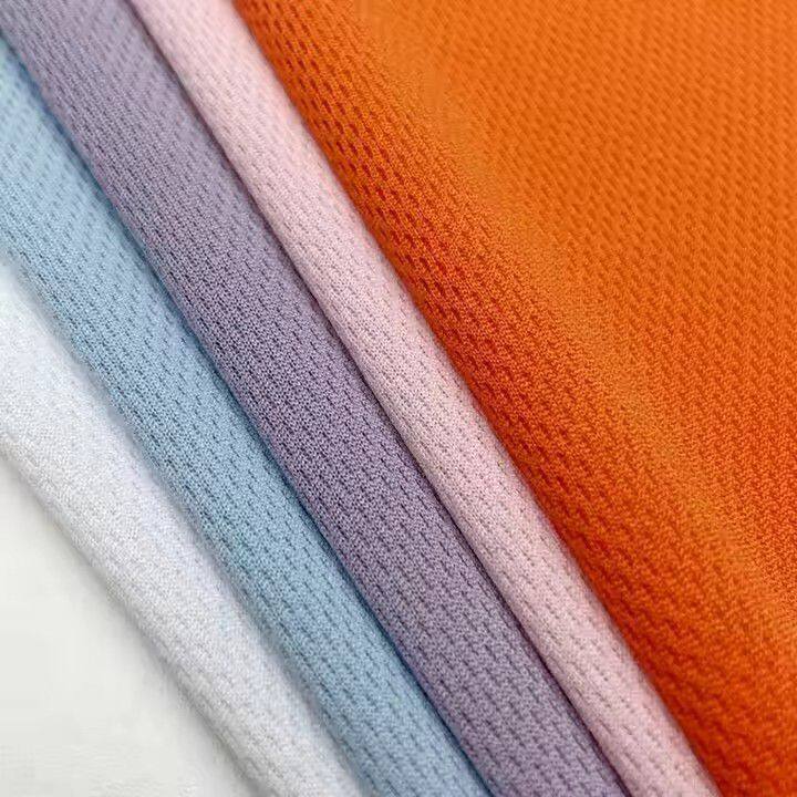 100% полиэстерный трикотажный дышащий, влагонепроницаемый ткань в клетчатом узоре ?птичий глаз?, сухой фит - материал для спортивной одежды. Ткань с отверстиями в узоре ?птичий глаз? для велосипедной жакеты, предназначенная для спортивной одежды и одежды в целом.