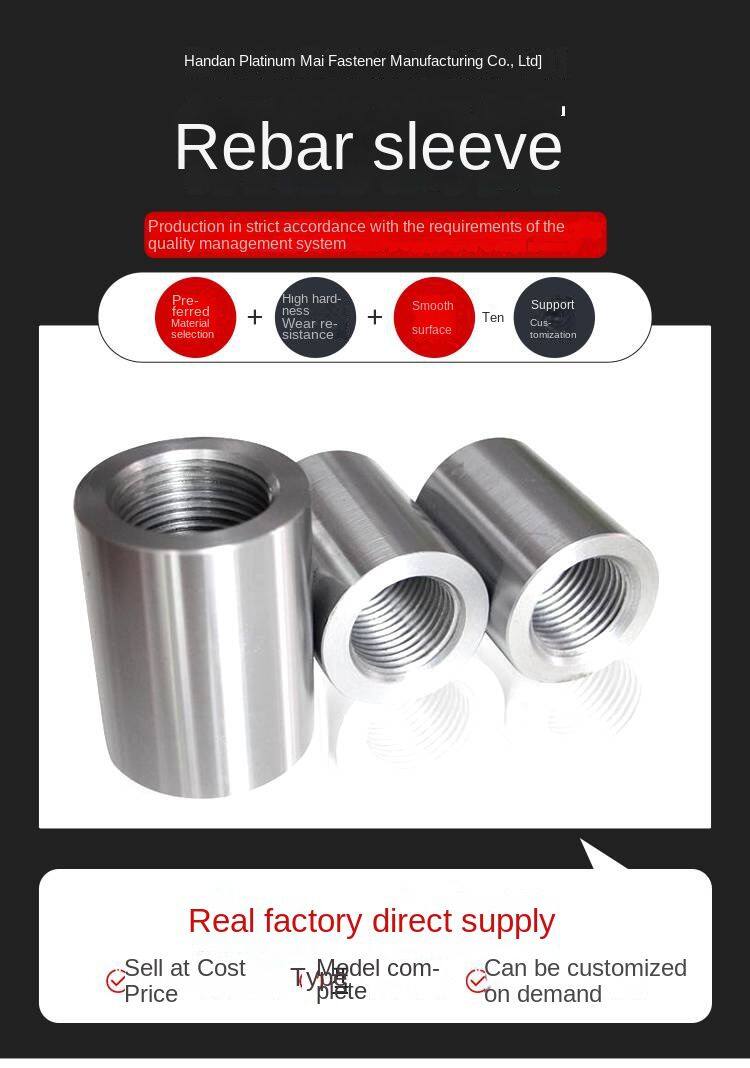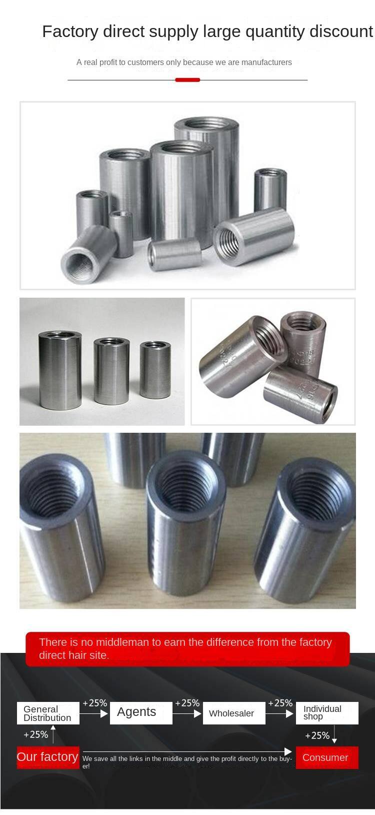 арматурная втулка, строительная соединительная втулка, втулка с прямым резьбовым соединением, гайка для соединения арматуры, резьбовая арматурная втулка