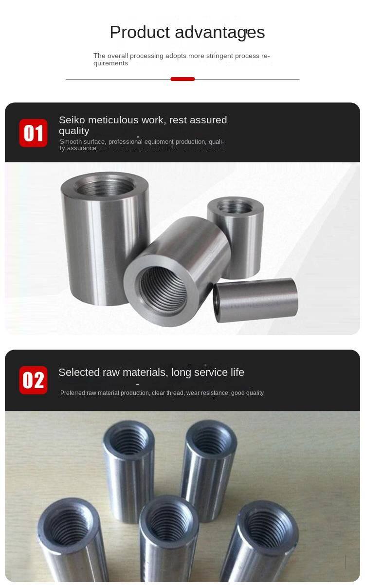 Главная > Продукты > Строительный резьбовой стальной муфта для арматуры по государственному стандарту, изготовленная из холоднокатаной стали марки 45#, производитель соединений арматуры