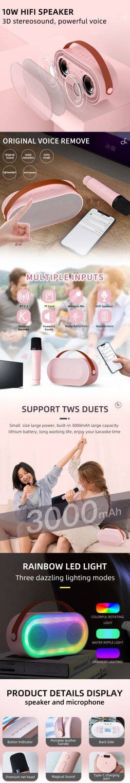 Мини-караоке динамик беспроводной для детского караоке, portable аудиоплеер, bluetooth-караоке динамик с микрофоном
