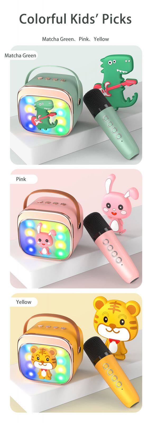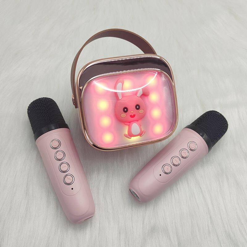 Мини-музыкальный Bluetooth-LED-ночной светильник, караоке-машина, портативный динамик, микрофонная машина, игрушка с 2 беспроводными микрофонами