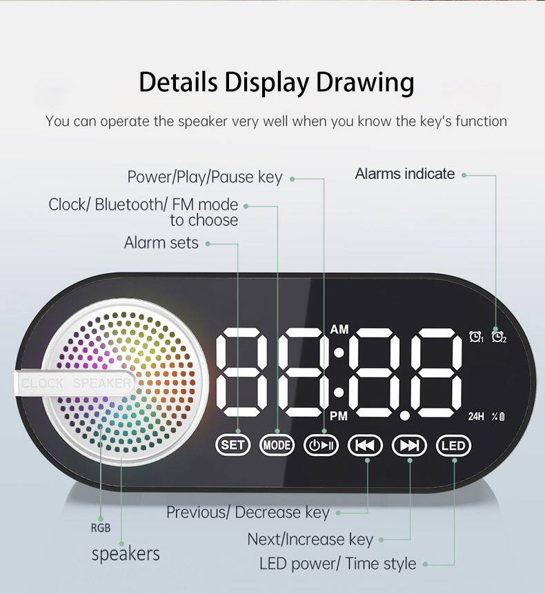 Главная > Продукты > Другие > Новый товар: цифровой дисплейный басовый динамик с RGB-эффектами света, беспроводной Bluetooth-колонка с FM-радио и будильником