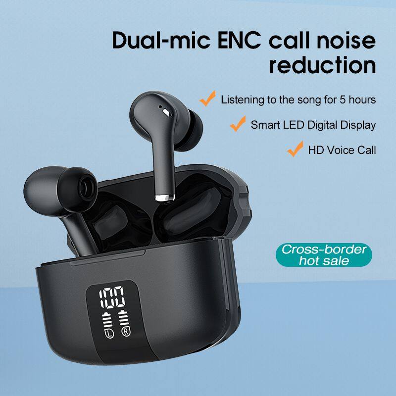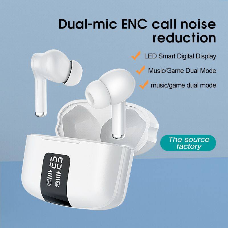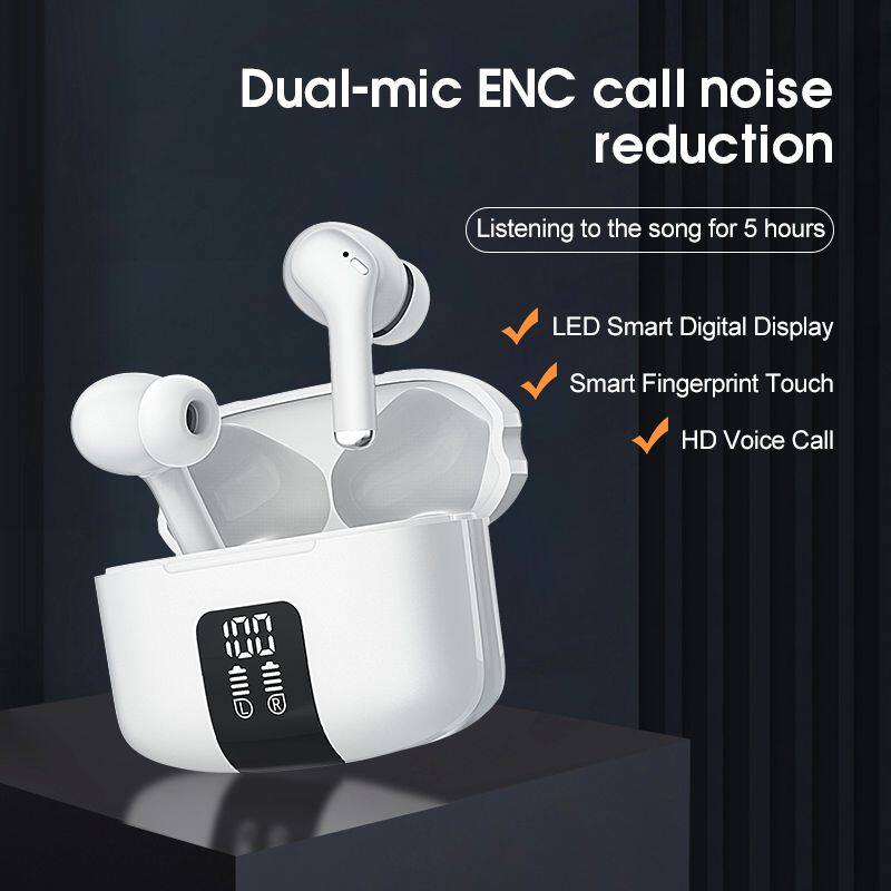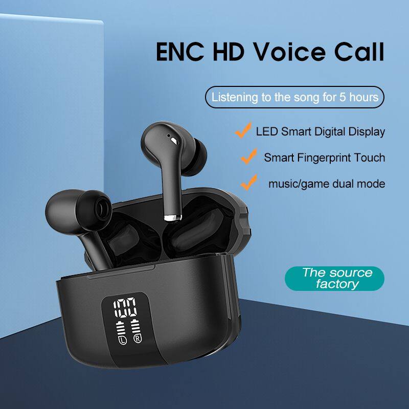 Мини-наушники Bluetooth 5.3 высокого качества, стерео TWS с шумоподавлением ENC и LED-дисплеем