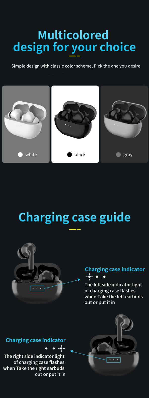 Наушники S03 TWS с шумоподавлением, беспроводные Bluetooth наушники для музыки, легкие наушники с микрофоном для звонков и зарядным футляром