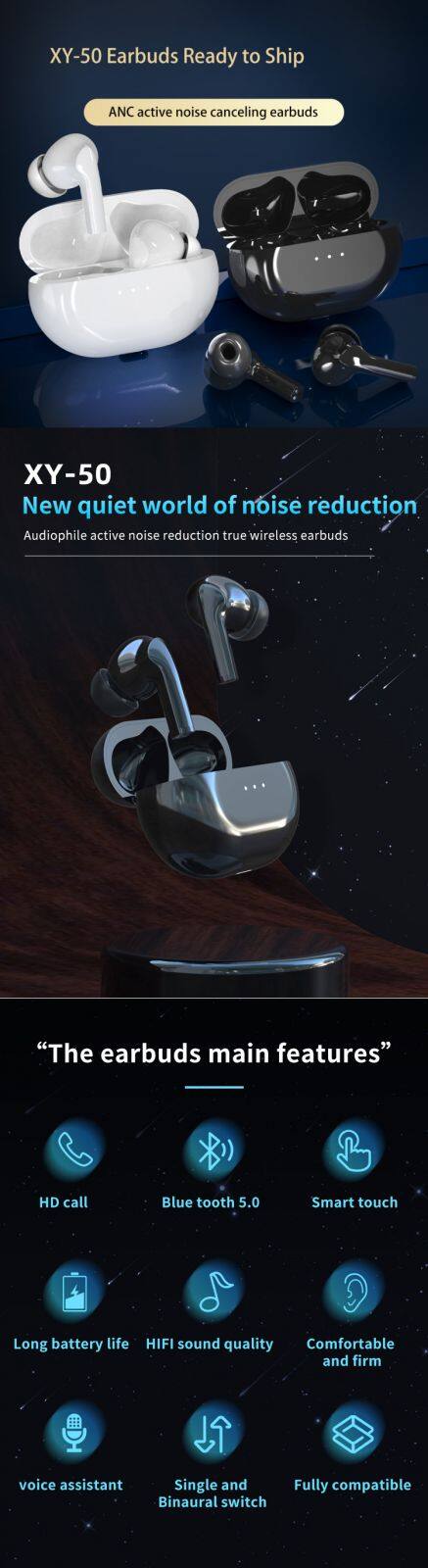 Главная > Продукты > Другие > Наушники XY50 ANC беспроводные, шумоподавление 40 дБ, Bluetooth, наушники с 6 микрофонами ENC для HD-звонков, наушники TWS с режимом прозрачности