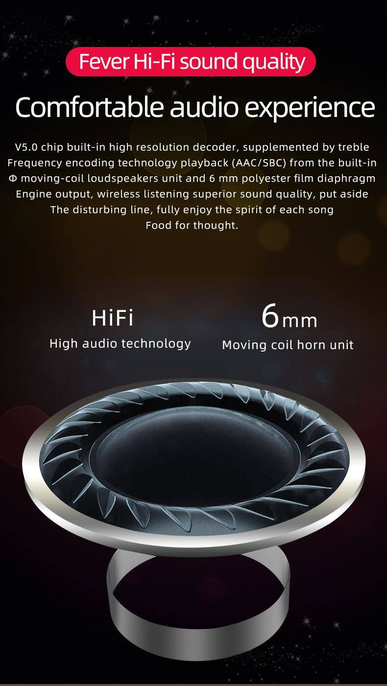 Особенности  | 1. Новейшая беспроводная технология 5.0 и высококачественное звучание Hi-Fi 2. Автоматическое сопряжение при открытии и умный сенсорный контроль 3. Эргономичный комфортный спортивный дизайн 4. Быстро заряжаемая коробка с 10 часами автономной работы  |