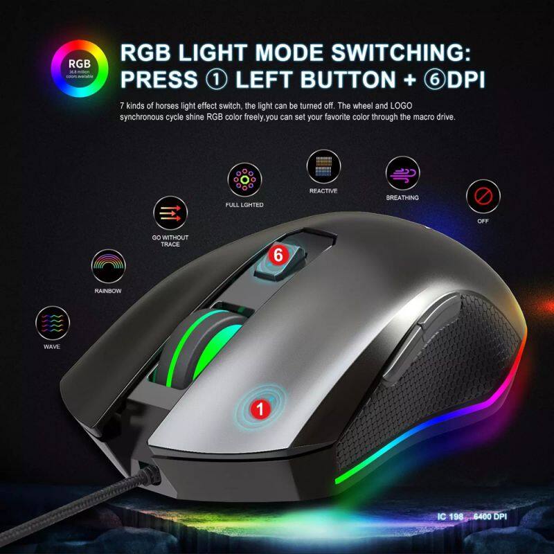 - TWOLF G590 мышь для игр с проводом с индивидуальным логотипом, дешевая RGB-мышь с 7 кнопками и USB, 7200 DPI, подсветка LED, проводная игровая мышь