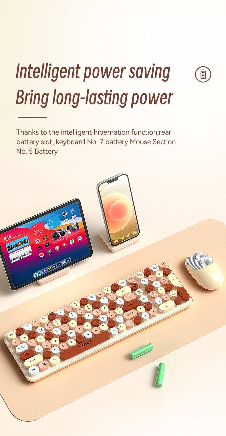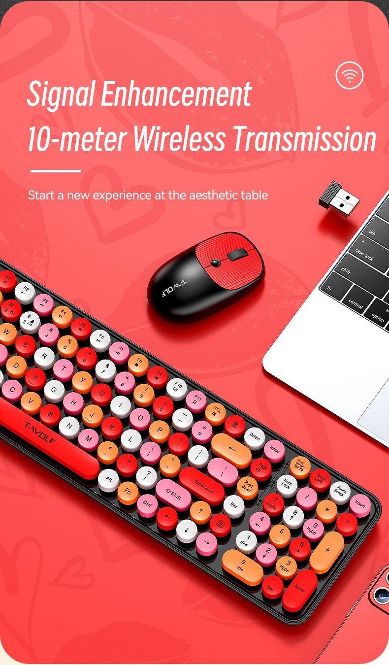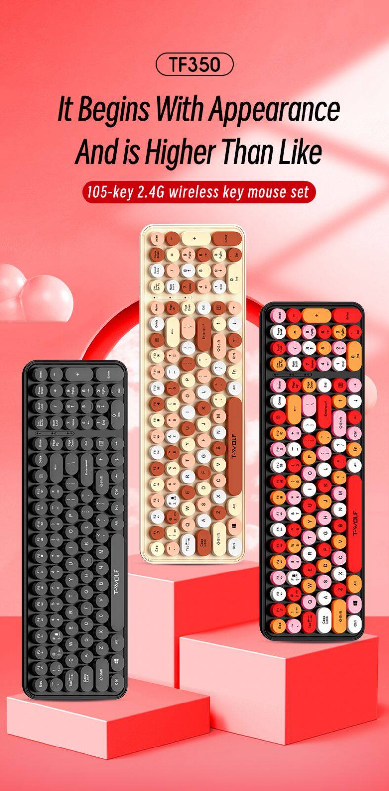 - Комплект беспроводной клавиатуры и мыши TWOLF TF350. Цветная клавиатура и мышь с круглыми клавишами. Миленькая беспроводная мышь для ноутбука и ПК