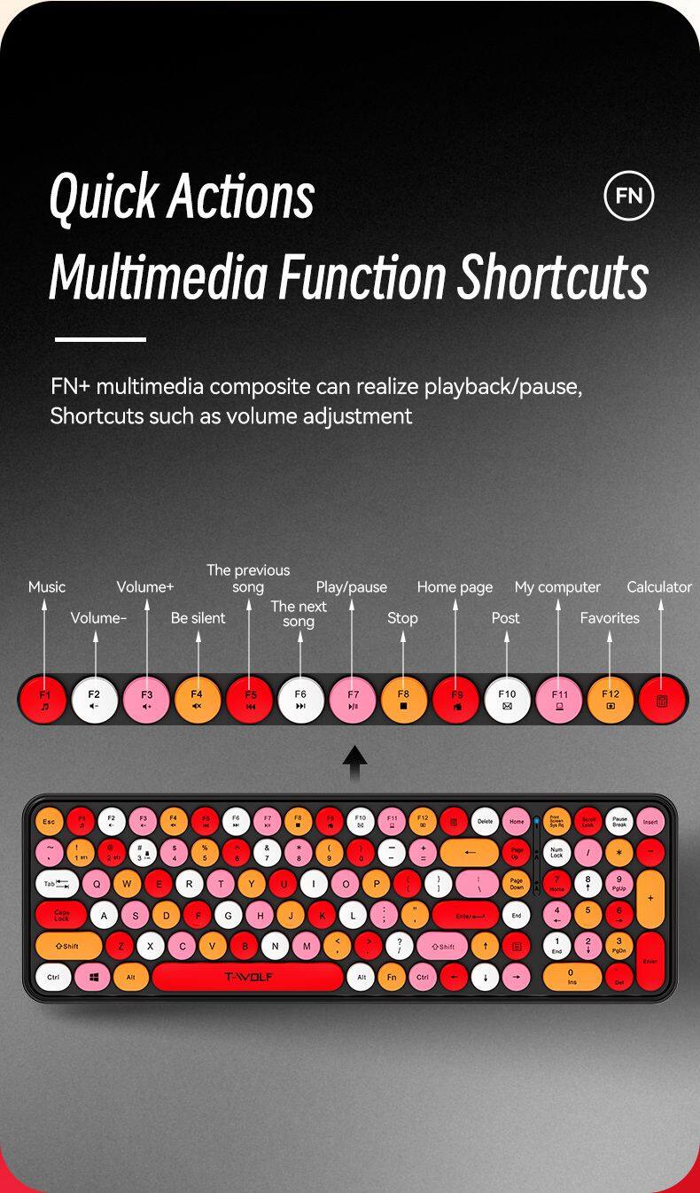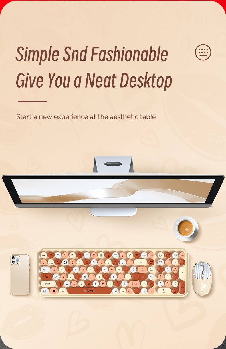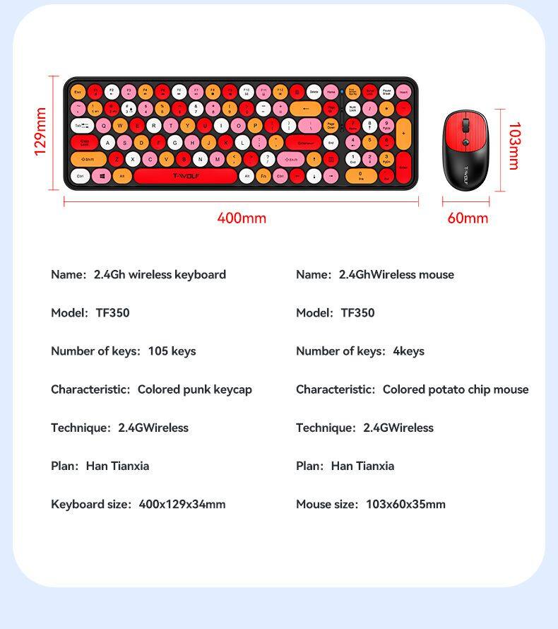 - Комплект беспроводной клавиатуры и мыши TWOLF TF350. Цветная клавиатура и мышь с круглыми клавишами. Миленькая беспроводная мышь для ноутбука и ПК