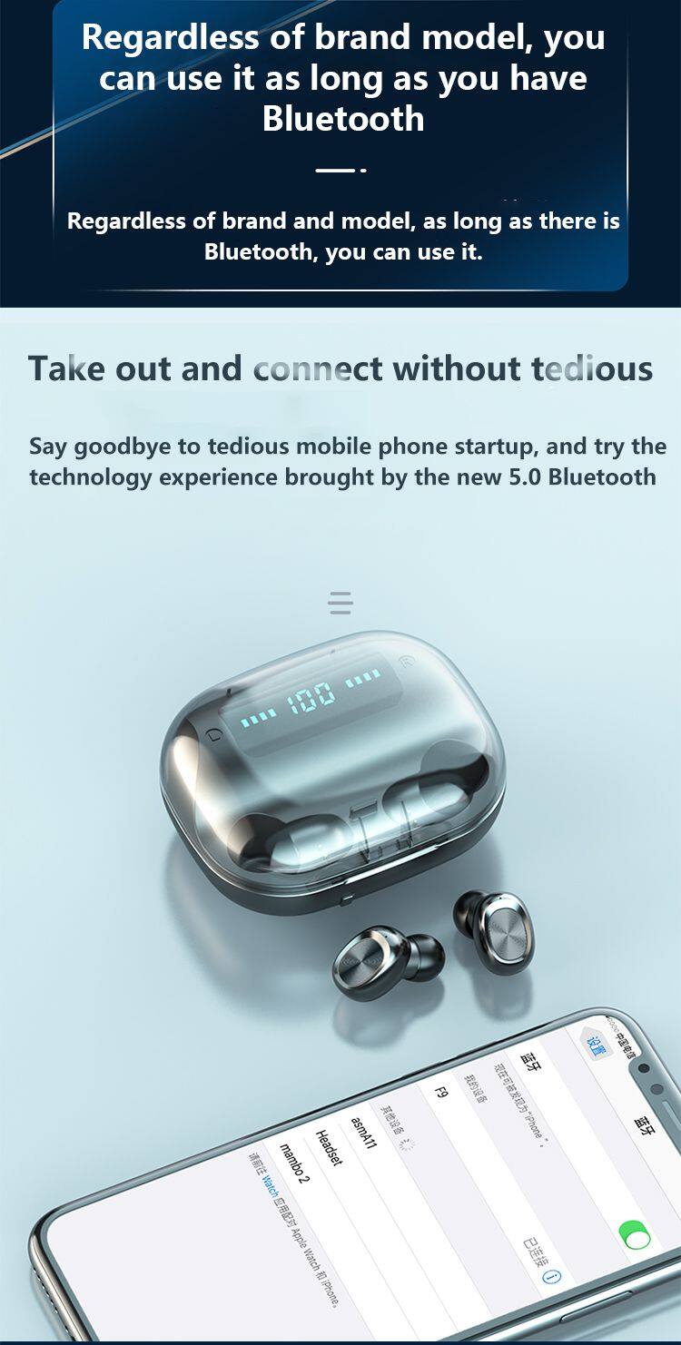 Цифровой дисплей, водонепроницаемые TWS Bluetooth наушники с шумоподавлением, мини-наушники с микрофоном, беспроводные стерео-наушники