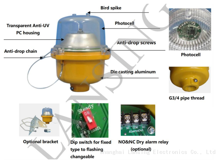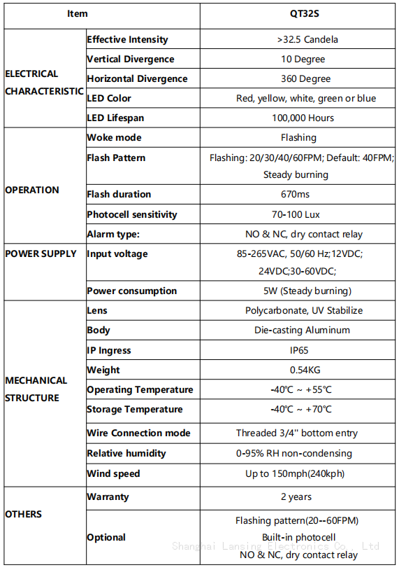 Главная > Продукты > Авиационное препятствующее освещение > QT32S Свет маяка низкой интенсивности с одним препятствием (тип B)
