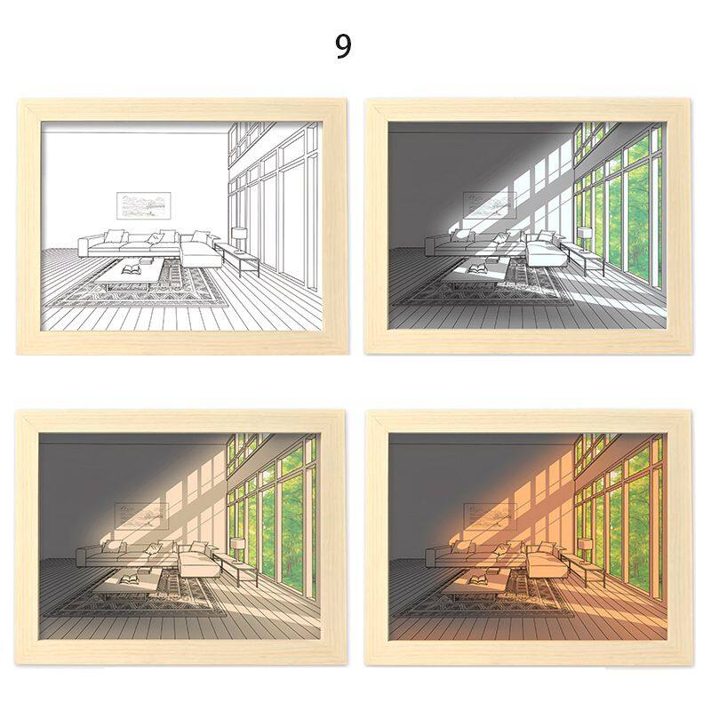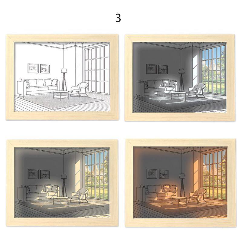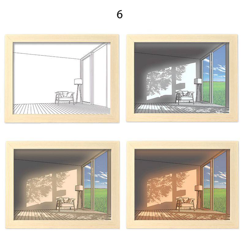 Горячая продажа: солнечное настенное художественное светильник-изображение. Регулируемая яркость LED-светильник. Декоративная картина с эффектом света и тени для украшения интерьера