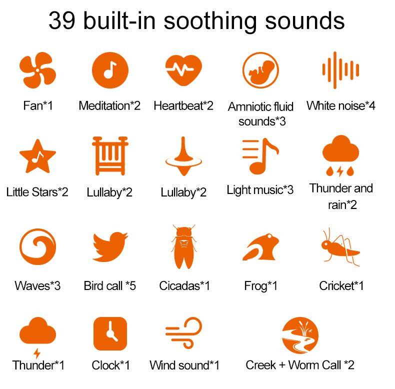 39 успокаивающих звука с регулятором громкости, таймером, заряжаемая звуковая машина для младенцев, белый шум с ночным светом