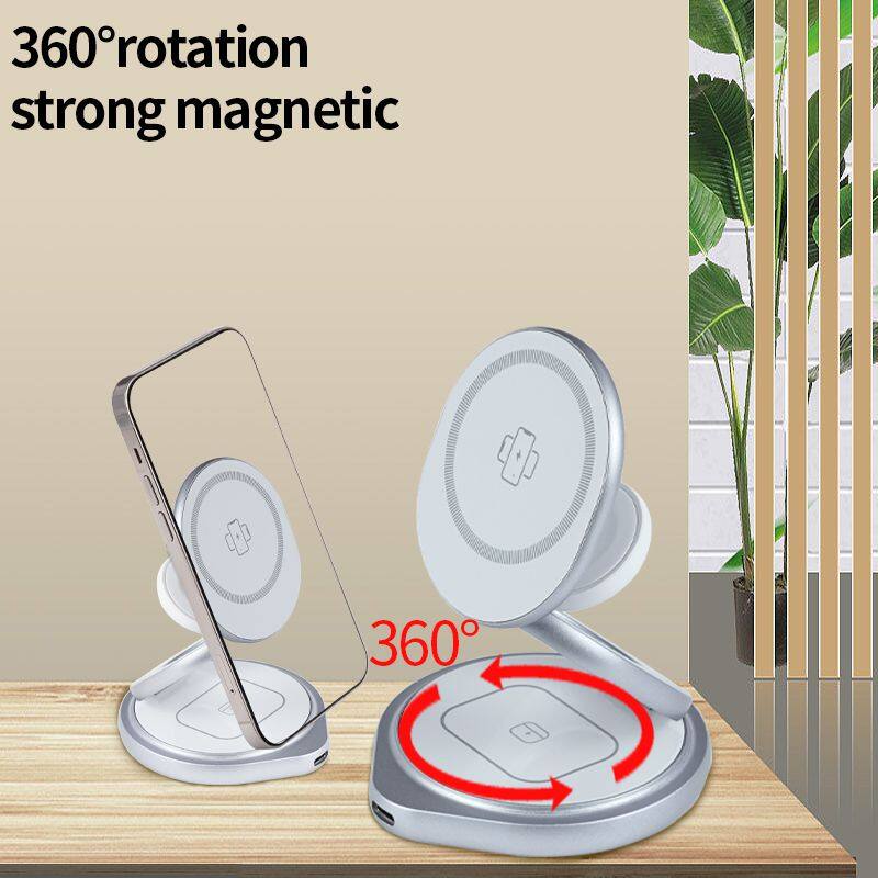 Главная > Продукты > Другие > Магнитный складной беспроводной зарядное устройство из цинкового сплава 3 в 1 с поворотной функцией и быстрой зарядкой для Apple 12 13 14 15 Pro Max