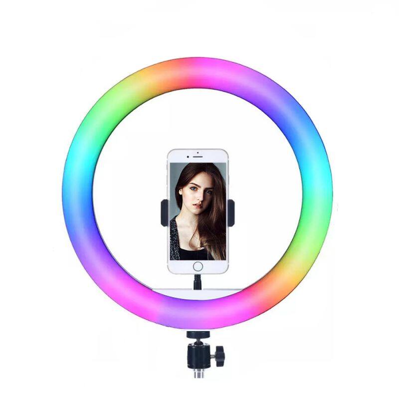- Горячие продажи: 18-дюймовая светящаяся кольцевая лампа для макияжа, светодиодная кольцевая лампа с тремя стойками 14, 18, 22 дюйма, подсветка для селфи, RGB кольцевая лампа