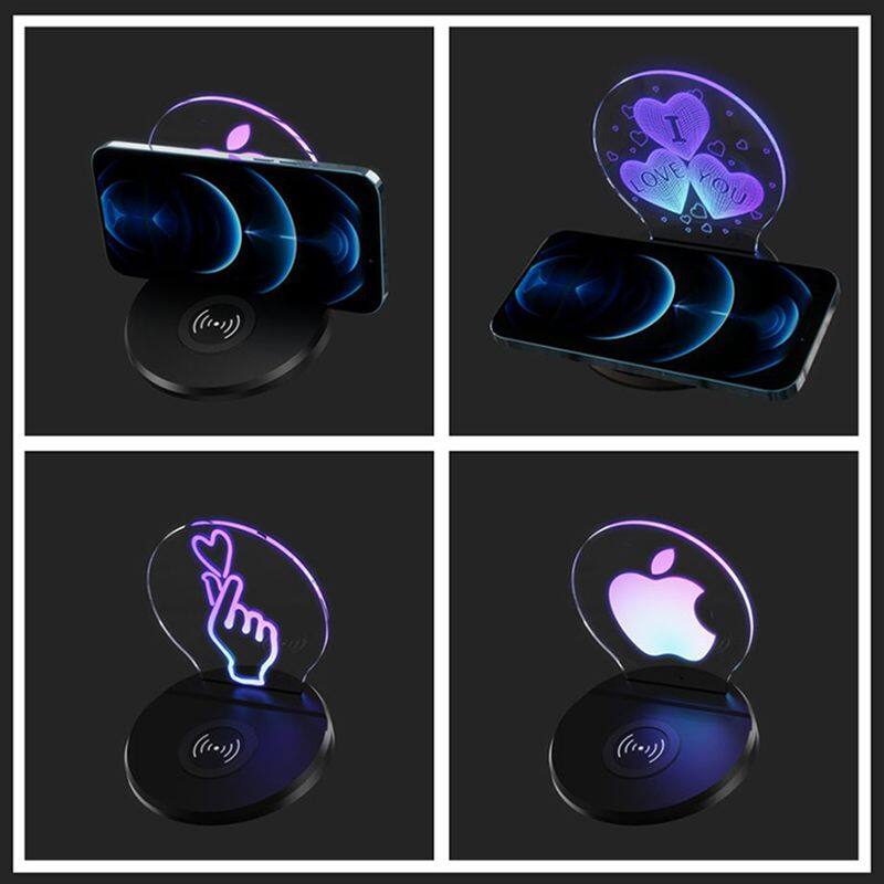 Беспроводной зарядное устройство с LED 3D светящимся логотипом с семью цветами. Лучший подарок. Многофункциональное 15В быстрый беспроводной зарядное устройство с держателем. Дизайн.