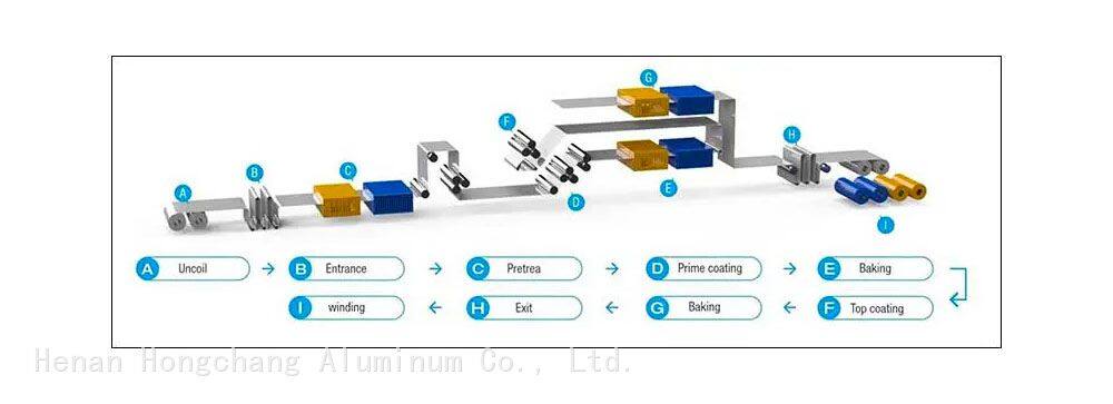 После очистки, хромирования, нанесения покрытия на валках и обжига алюминиевого рулона на поверхность рулона наносится краска различных цветов, это и есть цветной алюминиевый рулон.