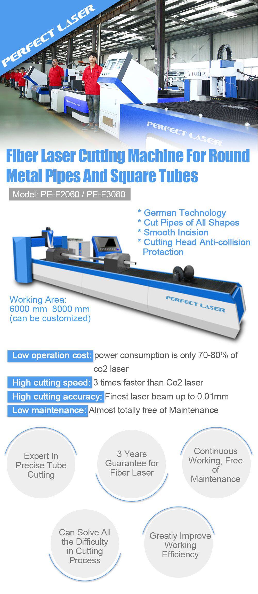 Perfect Laser 1000-4000W CNC Металлический Ротационный Круглый-Квадратный Трубный Фиберный Лазерный Режущий Станок