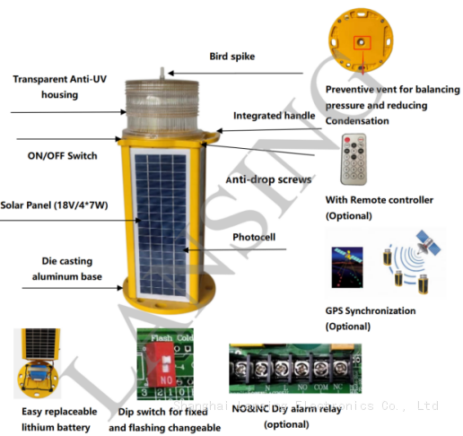 - Солнечный светодиодный авиационный огонек-знак препятствия