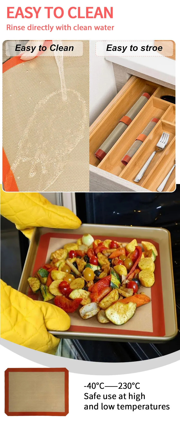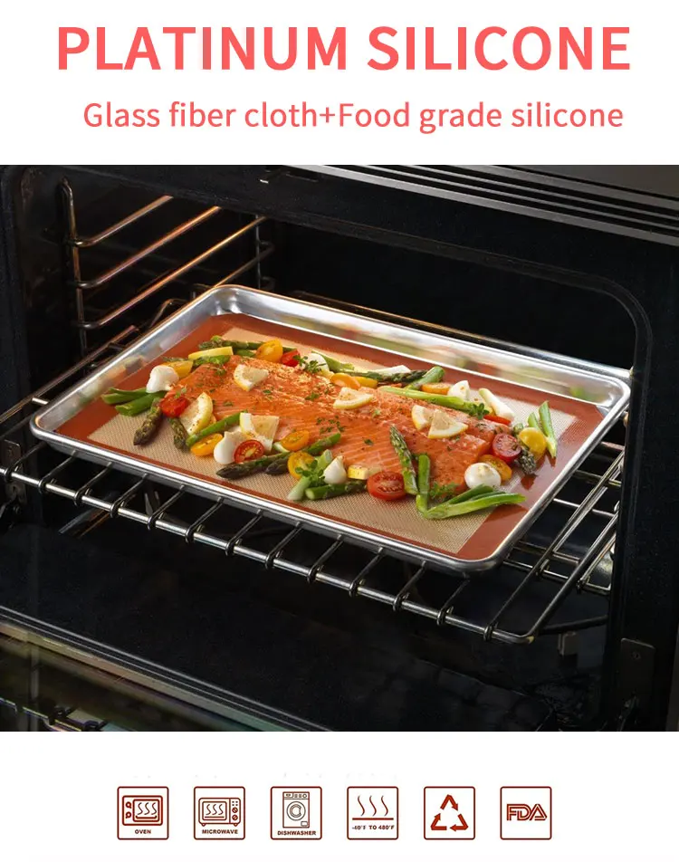 Безпригарная силиконовая выпечная подложка для печенья и бекона, сертифицированная FDA, предел температуры 450°F