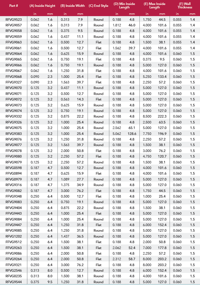 Удерживание может иметь либо круглое окончание (RFVG), либо плоское окончание (FFVG) | ||||||||