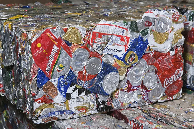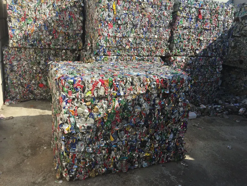 Сырьем является всякие сжатые бальзы, такие как консервные банки, металл, пластиковые бутылки и т.д.