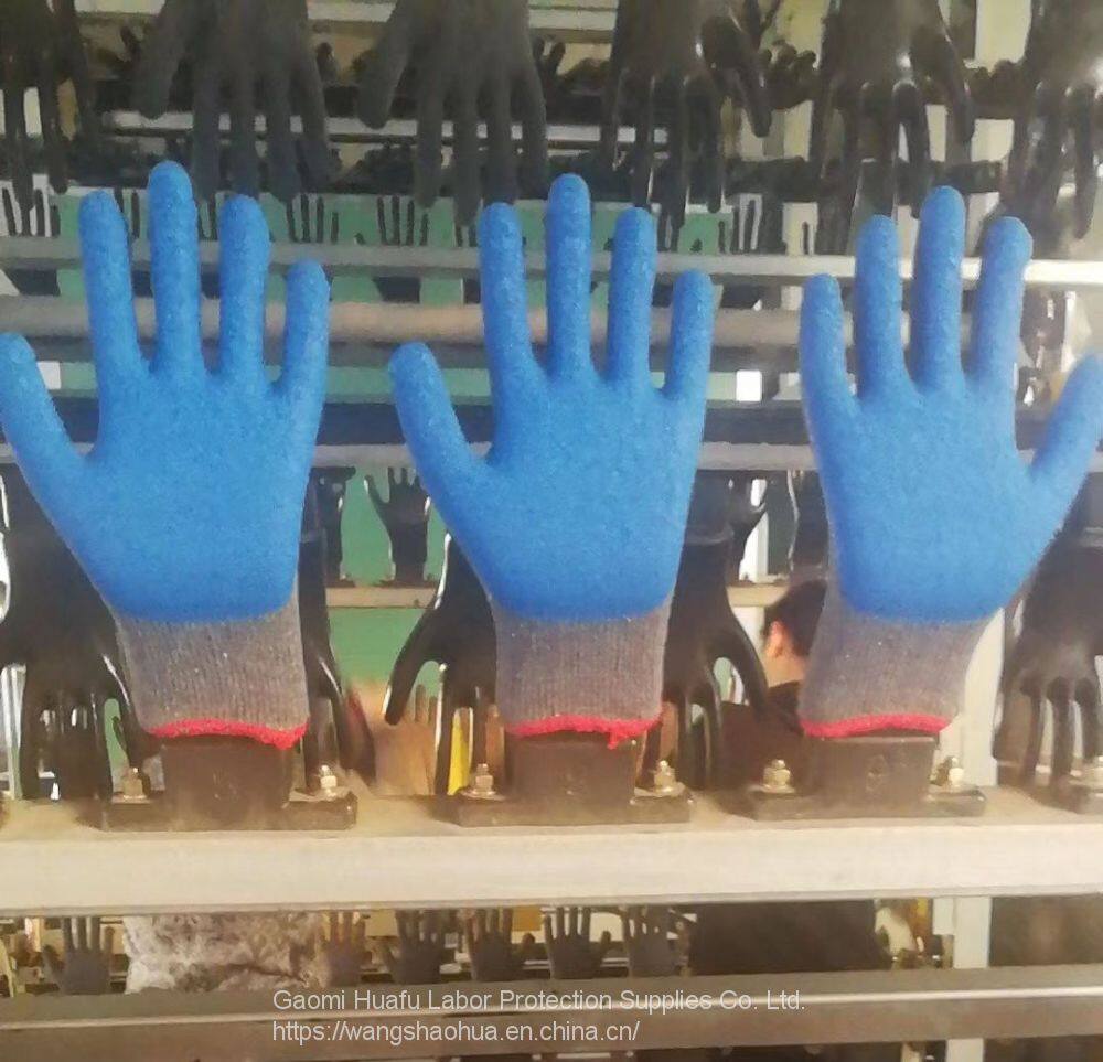 Белая полиэстеровая нить 13-гаужные вязанные синие морские волны, с морщинистой латексной рукавицей, полностью покрытые защитные рабочие перчатки
