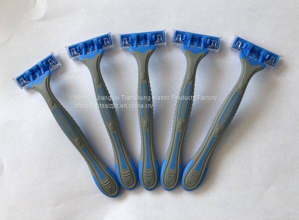 Производство недорогих одноразовых бритвенных станоков с резиновой рукояткой и тремя лезвиями