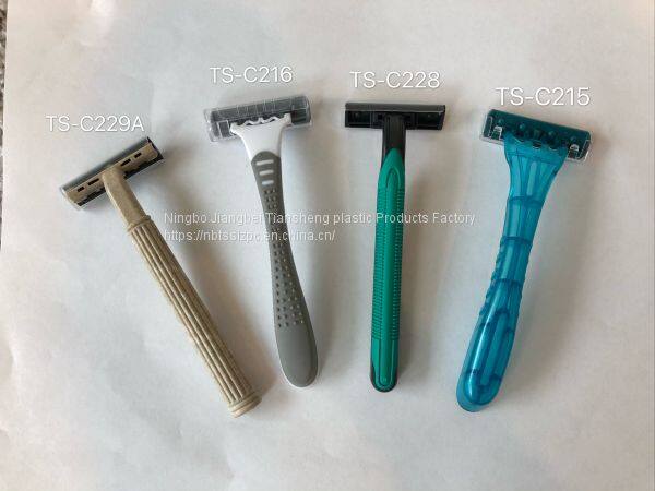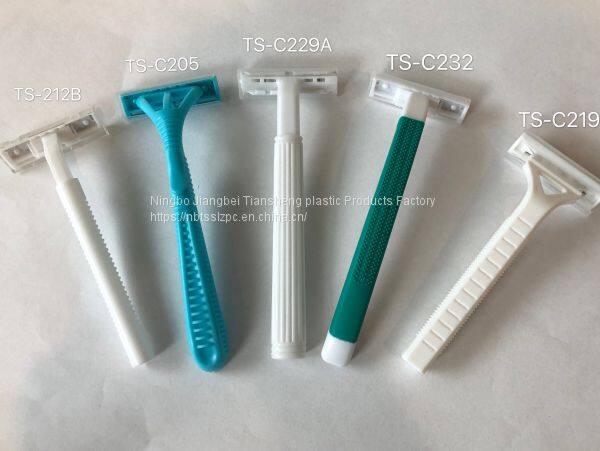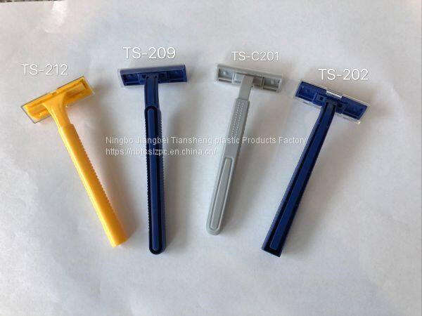 TS-C238 Голубой цвет, одноразовый бритвенный станок для мужчин с двумя лезвиями, пластиковая ручка, комфортный, дешевый, высококачественный для бритья бритвенный станок
