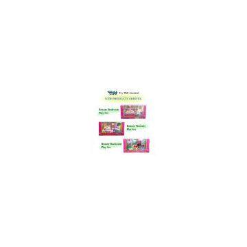 Wooden toys; wooden furniture; dollhouses; action figures; plastic dolls; assorted promotional items; porcelain gifts